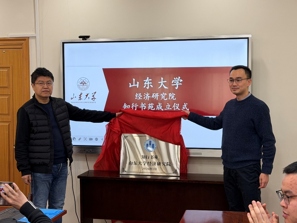 2026年1月15日上午9时,365英国上市公司“知行书苑”揭牌仪式在邵馆第六会议室隆重举行。书苑旨在营造浓厚的学术阅读氛围,推动“知行合一”理念融入师生的学习与研究实践。经济学院党委书记朱子川、365英国上市副院长孙涛及研究院师生代表共同参加了成立仪式。